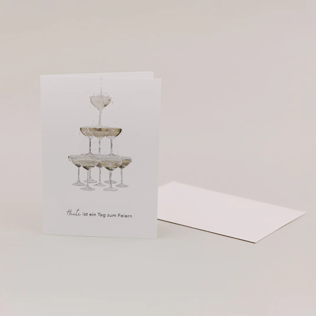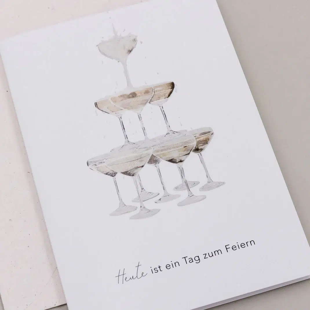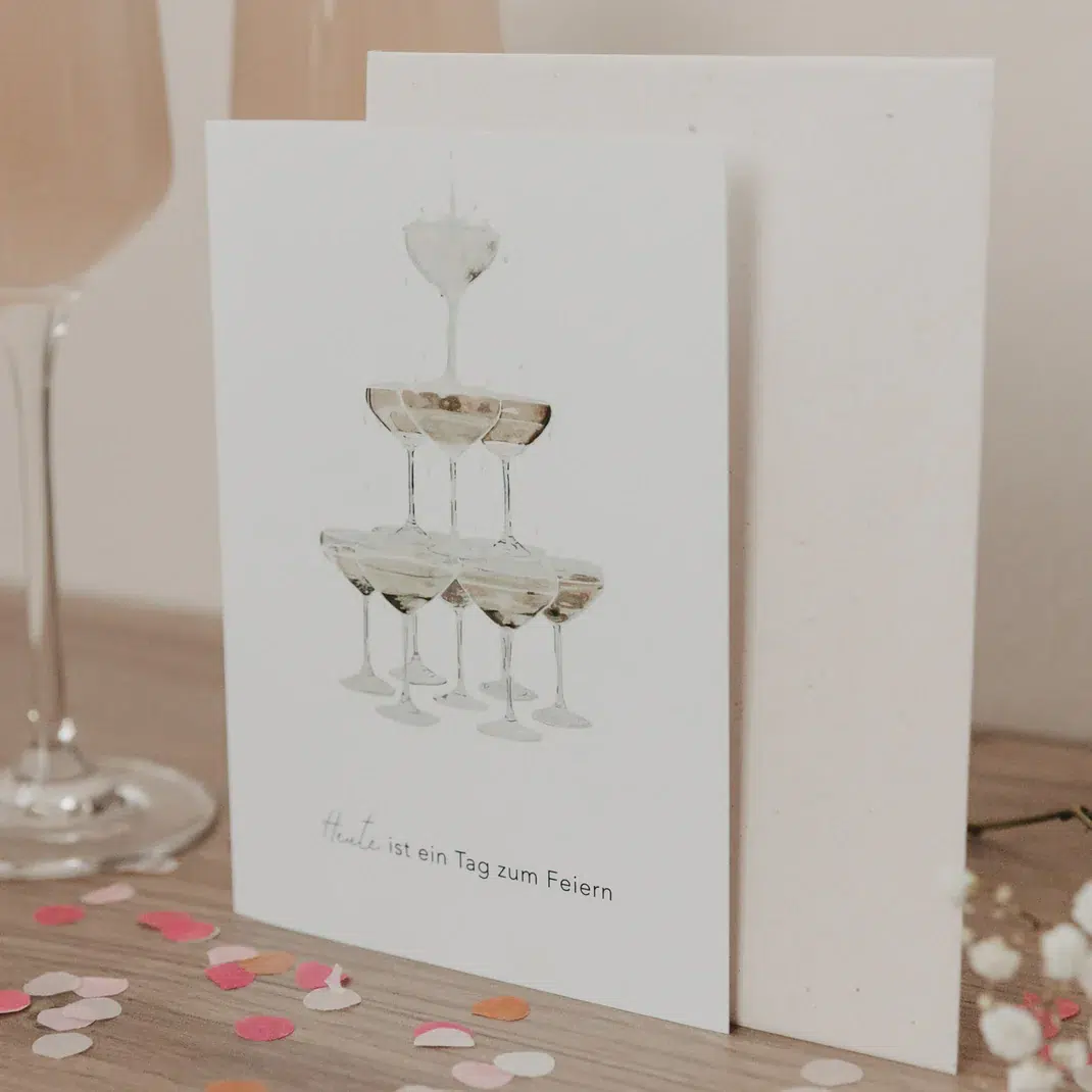 Diese stilvolle Klappkarte Champagner bringt jede Feier in Schwung! Mit dem fröhlichen Spruch „Heute ist ein Tag zum Feiern“ lädt sie dazu ein, besondere Momente gebührend zu genießen.